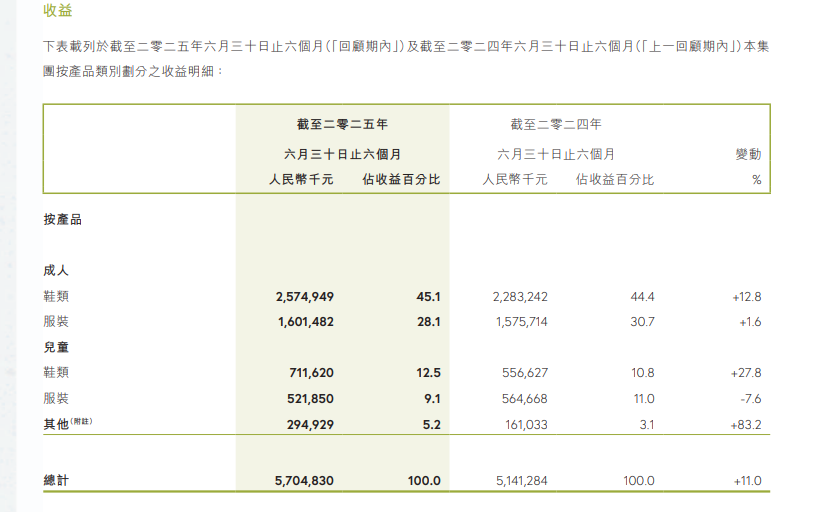 但这或许是以价换量达成的结果。公司在2025年上半年的成人及儿童服装平均批发售价分别下调了4.5%和6.3%,销量增长了4.2%,推动成人鞋类及服装产品毛利率分别同比上涨0.5%及1.1%。