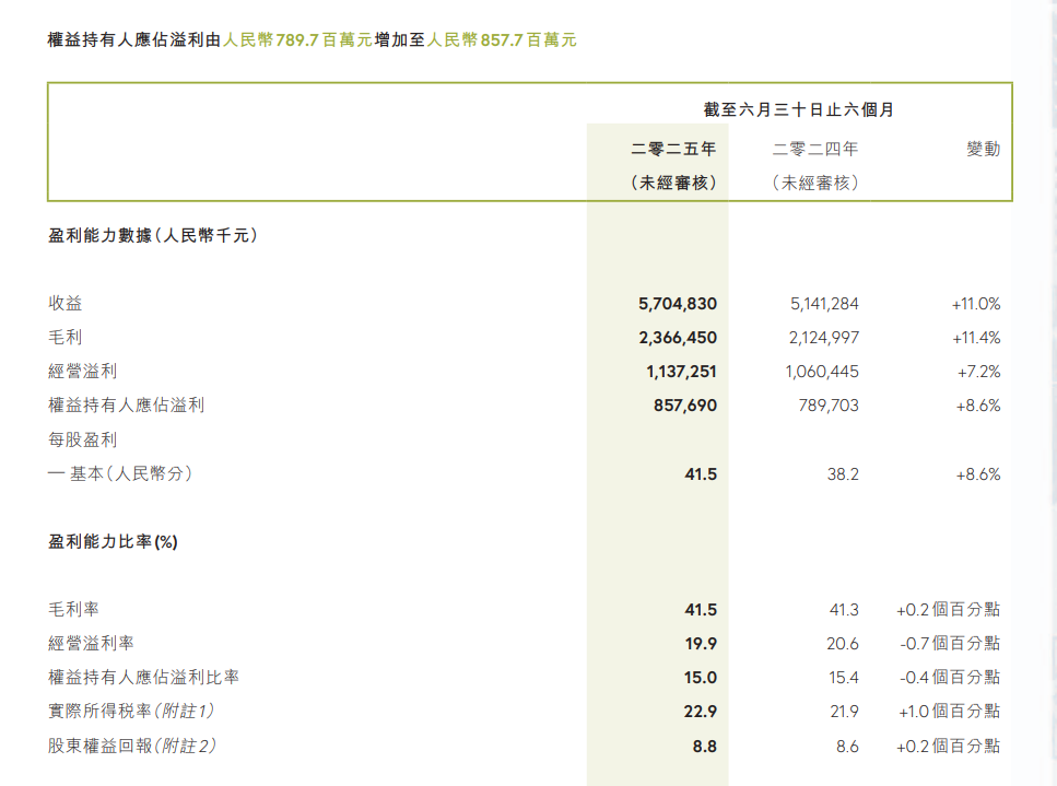 8月12日,361度披露了2025年上半年业绩。报告期内,公司实现营收57.05亿元,同比增长11.0%;实现净利润8.58亿元,同比增长8.6%。