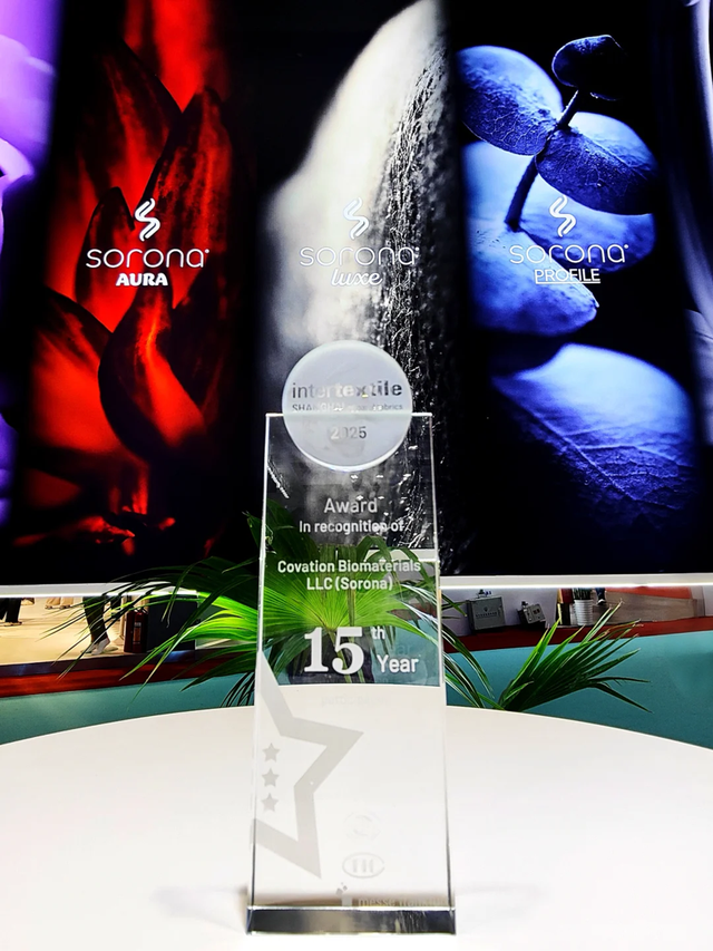 值得注意的是,SORONA®与Intertextile面辅料展相伴同行也已有15年之久。为了表达对SORONA®15年来坚定选择Intertextile以及在推动全球纺织行业可持续转型升级方面作出的杰出贡献,展会期间,主办方还专程组团到访SORONA®展位,并在晚宴上为SORONA®颁发了表彰奖杯,用实际行动表达了对SORONA®的感谢以及行业的高度认可。而这,不仅为SORONA®的2025 Intertextile秋冬面辅料展之行带来了惊喜,也为SORONA®携手生态伙伴们奔赴新征程提供了更多信心与动力——即使百舸争流、千帆竞渡,SORONA®走出的每一步,都将被看到、被认可!