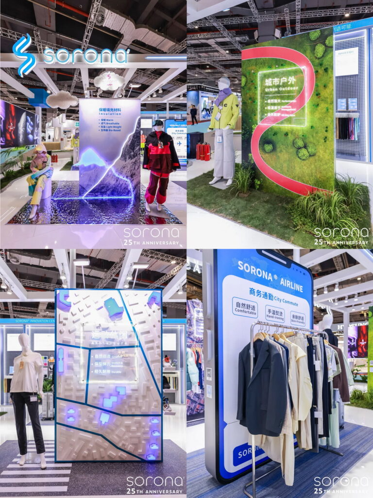 更能通过“城市户外”、“运动休闲”、“商务通勤”、“保暖填充材料”四大主题应用区,看到SORONA®生物基材料应用之广泛。其中,SORONA®Aura保暖填充材料,更是以保暖、透气、轻盈以及生物基优势,吸引了诸多需求买家的目光,这一保暖填充材料将给保暖领域提供更多选择。