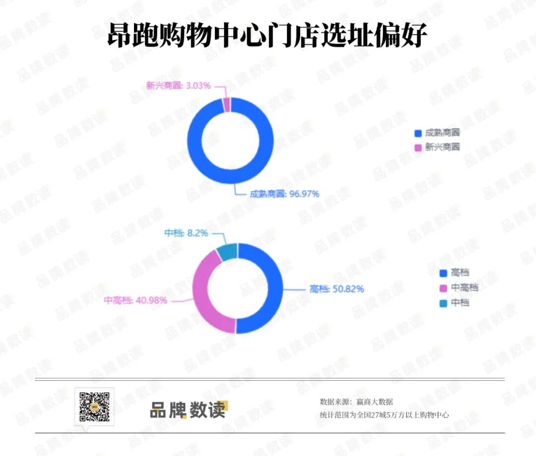 昂跑也是相似的策略,赢商大数据显示,在全国27城5万方以上的购物中心开设的昂跑门店中,高达96.97%的门店位于成熟商圈,新兴商圈极少尝试。