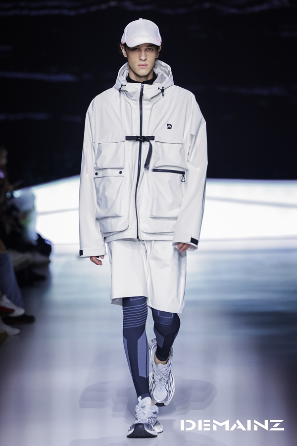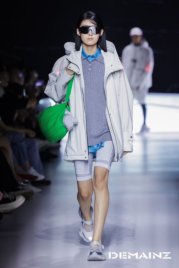 压褶针织以山势为褶,结合人体工学剪裁,确保活动自如;Demizax无氟防水冲锋衣以环保工艺诠释可持续户外理念,兼具抗风雨与透气性能;帐篷式可变外套通过可拆卸组件与多穿法设计,打破室内外场景界限,构建出真正“可穿戴的移动生活系统”。本系列还与李未可AI眼镜达成跨界联动,智能蓝光不仅在夜间行走中提供安全可视性,更在服饰中嵌入轻量智能温控模块,科技元素与户外防护性能在设计中深度融合,传递出“人地和谐”亦兼备“山野驰骋”的时尚户外哲学。