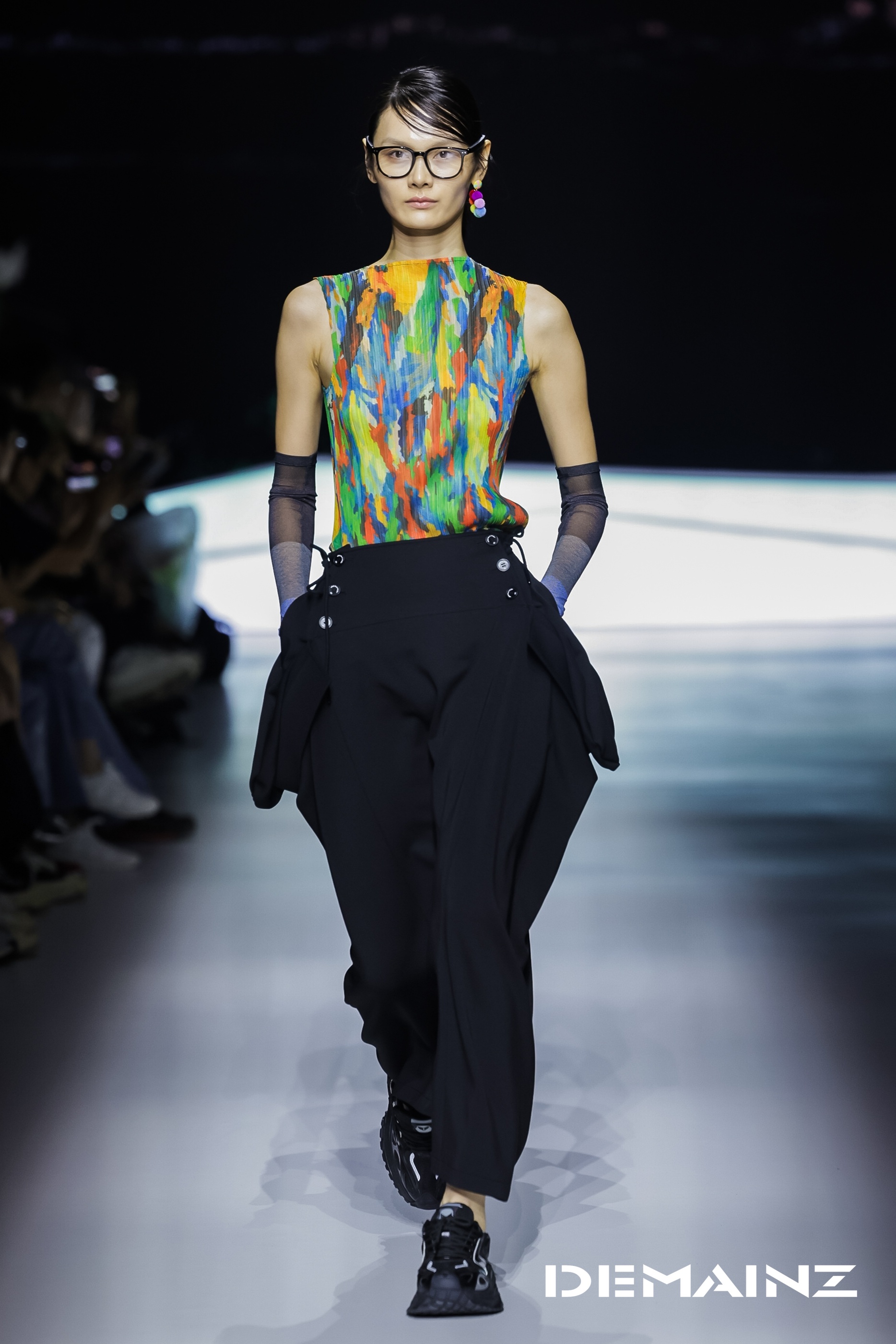 在设计赋能、商业向善与户外功能并重的理念之下,陈致画不仅将深山非遗元素转化为视觉语言,更借助诸如李未可AI智能眼镜等科技产品,强化服装的多场景功能叙事与未来山地美学。这一系列尝试,也体现出DEMAINZ地缦在可持续时尚、户外科技与人文关怀交叉领域的积极实践。