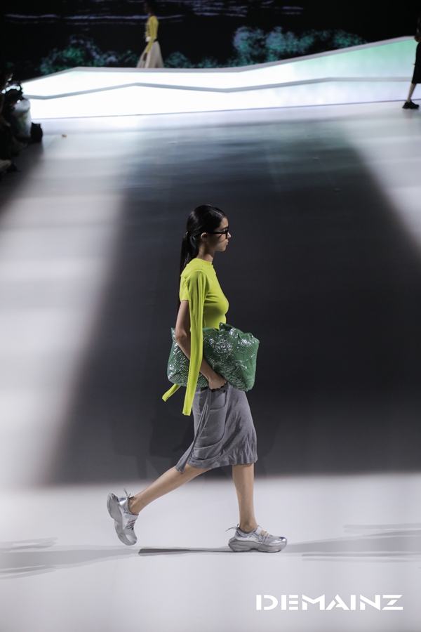 整场大秀通过高性能织物、可转换结构与科技配饰,重新诠释“林茶共生”的古老智慧,并延伸出“机能美学”的当代户外语言。LED光影所勾勒的茶树根系与神鸟舞仪式的当代演绎,结合模特在起伏T台上的多地形演绎,进一步烘托出自然、艺术与科技融合的沉浸意境,凸显地缦品牌在“时尚户外”领域独具前瞻性的探索。