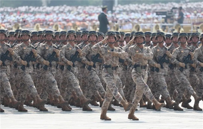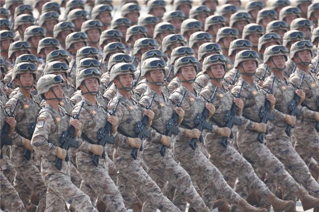 (上图为:网络空间部队方队将士身着际华3534公司制19阅兵荒漠迷彩通用作战服产品接受检阅)