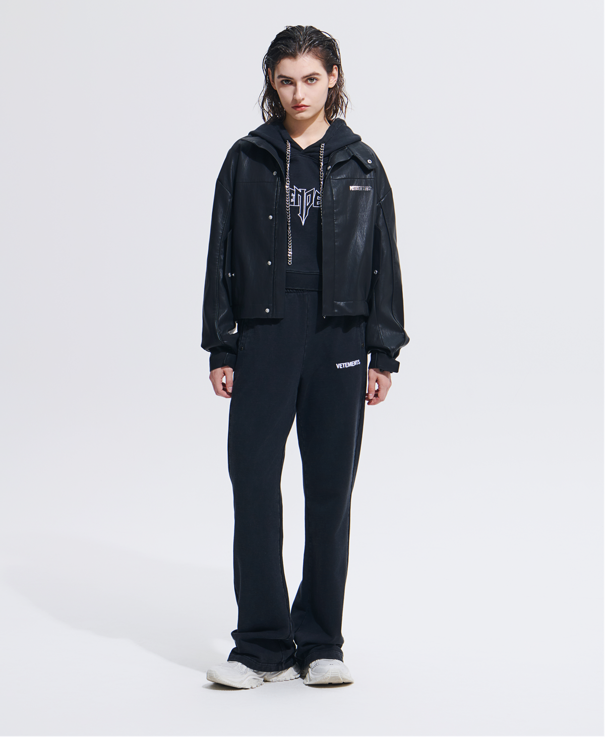 VETEMENTS荔枝纹机车皮夹克,立领设计利落有型,宽松廓形透着随性不羁的街头腔调。复古皮质自带硬朗质感,简约三角口袋与金属小标作点缀,细节里藏着时髦态度,单穿或叠搭都能轻松穿出“又飒又有范儿”的造型。