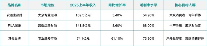 2025年上半年,安踏集团旗下所有品牌收入均创历史新高。各品牌表现呈现出明显的分化特征: