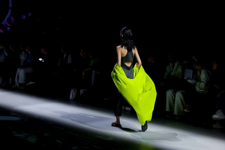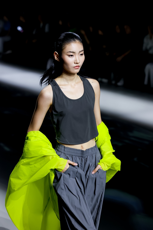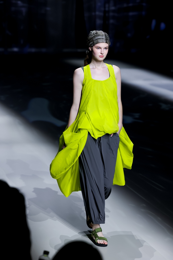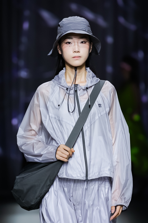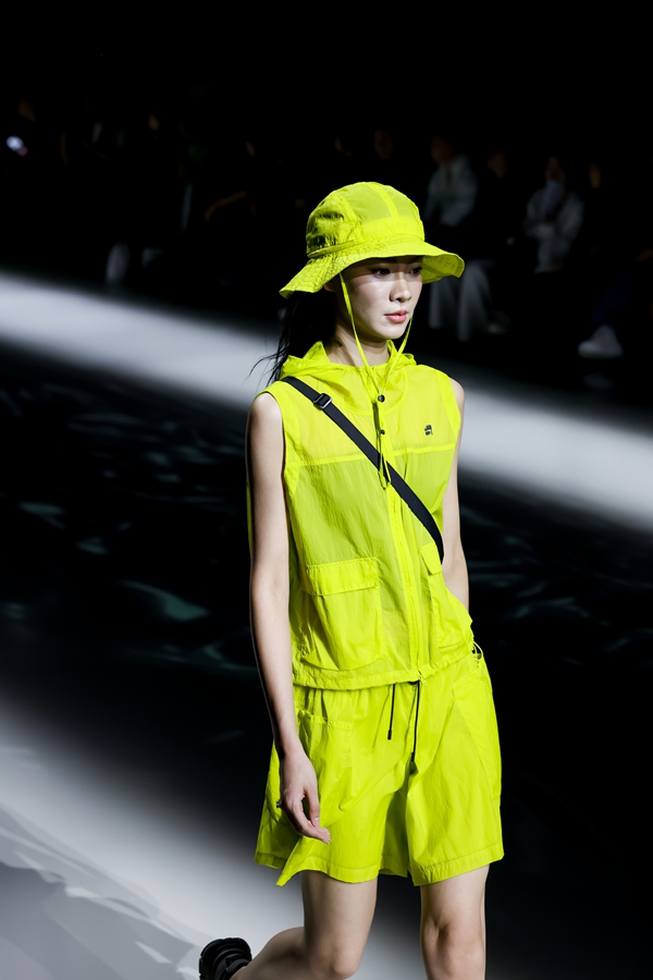 本季重点推出的城市轻户外支线令人耳目一新。采用极致轻速干的创新科技面料,在保持轻盈的同时实现拒水抗皱的性能。实验性的立体剪裁使轻户外服装也具备了时装的美感,孙铭介绍道,“就像水本身的多变与兼容一样,轻户外系列兼具功能性实用性与审美价值,可以在不同的生活场景中轻松“驭水而行”。