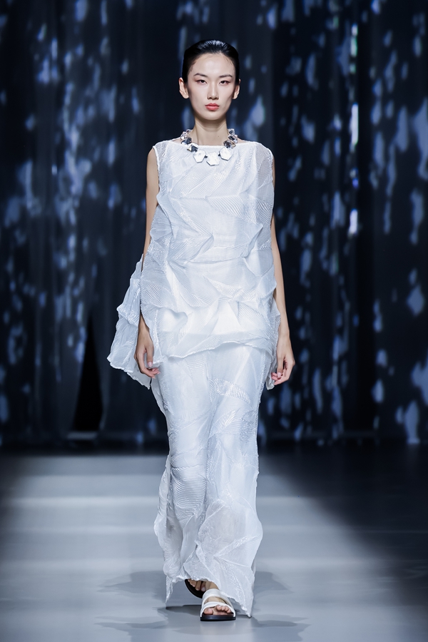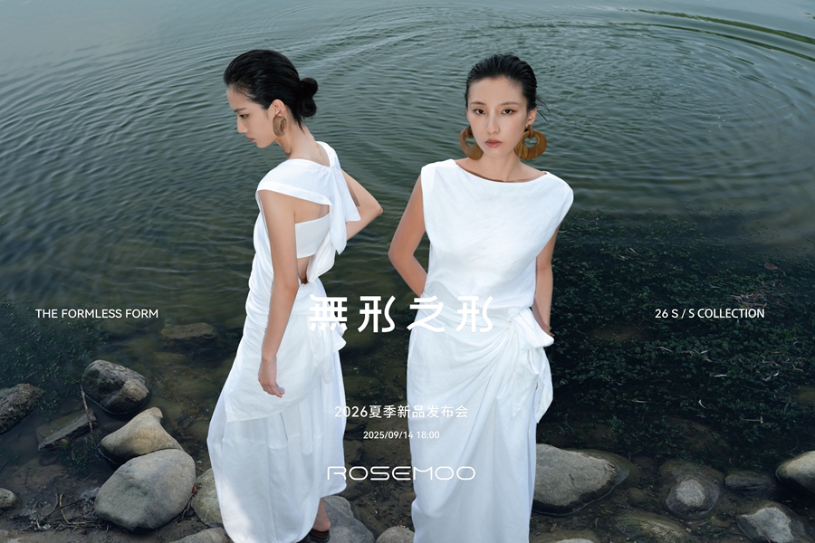 2025年9月14日,北京——在2025中国国际时装周(秋季)发布期间,ROSEMOO容子木品牌设计师孙铭呈现以“無形之形”为主题的女装系列,通过服装语言解构水的哲学维度,展现东方美学与可持续设计的前沿对话。
