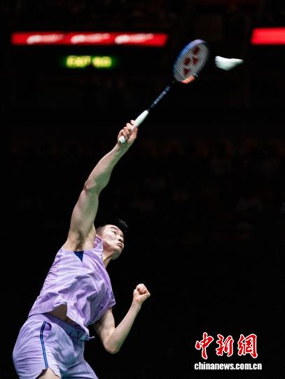 9月14日,2025年中国香港羽毛球公开赛各项决赛在位于红磡的香港体育馆举行。图为李诗沣在男单决赛中扣杀。 中新社记者 侯宇 摄