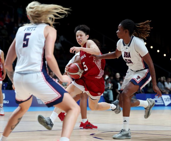 9月17日,中国队球员冉珂嘉在比赛中上篮。新华社记者 李一博 摄